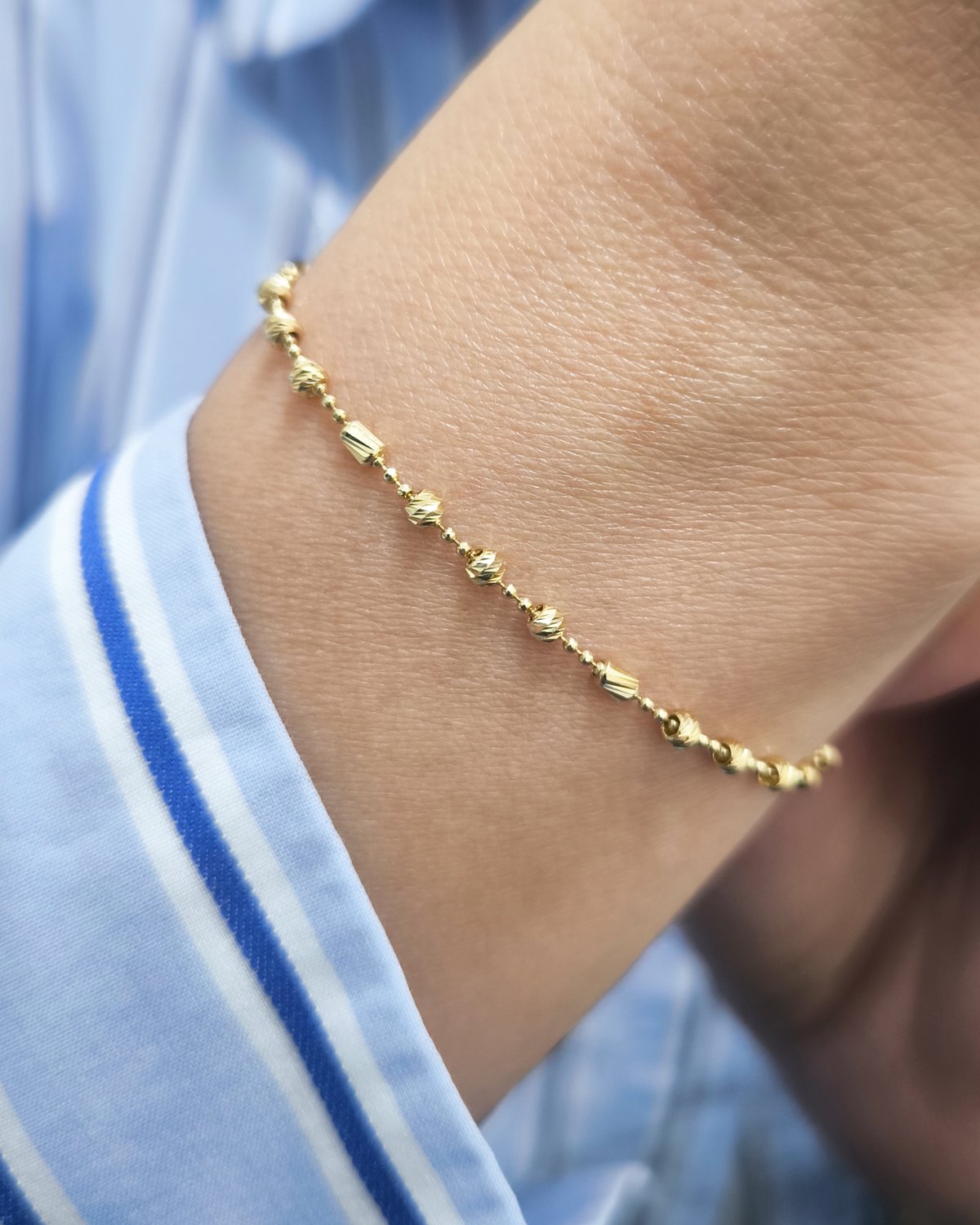 Dorikalı İnce Bileklik, farklı giyim tarzlarınıza kolayca uyum sağlar. İster casual bir kombini zenginleştirmek isteyin ister şık bir gece elbisesiyle kullanın, bu bileklik her ortamda sizinle. Ürünün ince yapısı, diğer aksesuarlarla birlikte kullanım için de idealdir; diğer takılarınızı tamamlar ve görünümünüzü daha da sofistike bir hale getirir.