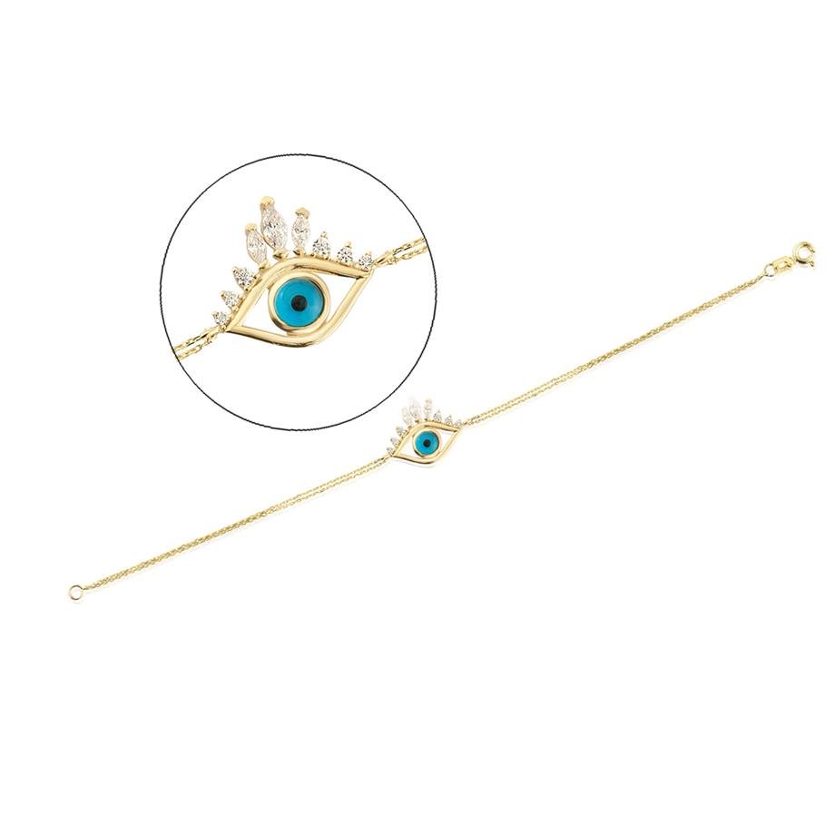 Taşlı Göz Boncuklu Zincirli Bileklik